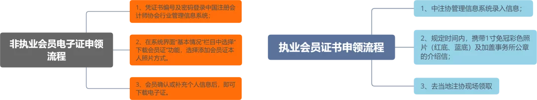 执业和非执业注册会计师会员证书的领取方式不同。日前,中注协宣布停发纸质版非执业会员证书,换发为电子证书,自2021年1月1日起生效,而纸质版证书将于2025年12月31日作废。